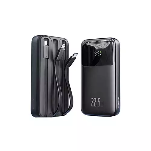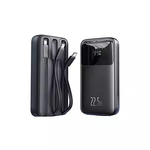 Baseus Comet Series PPMD2-20 is a powerful, stylish 20,000 mAh power bank built for everyday charging needs. It supports 22.5W fast charging, so your devices power up quickly and efficiently. Whether you use a smartphone, tablet, or wireless earbuds, this power bank keeps you ready all day. It features three built-in cables, which remove the need to carry extra wires. You can charge multiple devices at the same time without searching for cables. This design makes it perfect for travel, office use, and outdoor activities. The digital display clearly shows the remaining battery level. You always know when it’s time to recharge. The screen is bright and easy to read, adding a modern touch to the design.