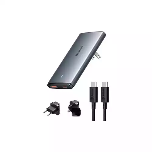 Baseus GaN5 Pro CCGP150113 USB & USB-C 65W Charger in Gray, available at Tech Land BD, is a cutting-edge wall charger designed for ultimate portability and performance. This ultra-slim, 16.5 mm-thin charger, weighing just 101 grams, leverages advanced GaN5 technology for efficient, high-speed charging with minimal heat. Delivering up to 65W through its dual USB-C and USB-A ports, it can charge an iPhone 14 to 50% in 30 minutes or a MacBook Pro to 40% in the same time, with dynamic power allocation for simultaneous charging of laptops, smartphones, and tablets. Its universal compatibility supports fast-charging protocols like PD3.0, QC3.0, and Samsung AFC 45W, making it ideal for Apple, Samsung, and other major brands. The charger features a foldable 2-pin and 3-pin plug (US/UK/EU adapters included), conforming to global voltage standards (100- 240V), perfect for travel. Its sleek, pocket-sized design (92.5 x 50 x 16.5mm) fits snugly in tight spaces, enhanced by a soft, durable finish and a blue indicator light for charging status. The package includes a 100W USB-C to USB-C cable, EU/UK plug adapters, and a user manual. Backed by a 6-month warranty (claimable with original box and accessories), this charger offers safety features like over-voltage and short-circuit protection. Purchase the Baseus GaN5 Pro from Tech Land BD for a reliable, compact, and powerful charging solution that keeps your devices powered on the go.