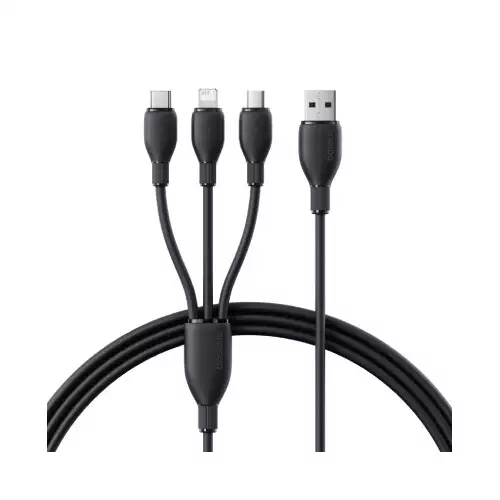 The BASEUS Ultra-Fast 3 in 1 Fast Charging Cable is the perfect solution for users who need a reliable, multi-purpose charging cable for all their devices. Designed for convenience, this versatile cable features three output connectors — Micro USB, Lightning, and USB-C — allowing you to charge smartphones, tablets, power banks, and other devices simultaneously. With a maximum current output of 3.5A, it supports fast and efficient charging, minimizing waiting time and ensuring your devices stay powered throughout the day. Crafted from high-quality TPE material, the cable offers excellent flexibility, durability, and resistance to wear and tear, preventing tangling or breakage even with daily use. The 1.3-meter length provides the perfect balance between reach and portability, making it ideal for both home and travel use. The sturdy USB-A input interface ensures stable power transmission, while the precisely engineered connectors guarantee secure and reliable contact with your devices. Whether you need to charge an iPhone via Lightning, an Android device via USB-C, or accessories with a Micro USB port, this cable does it all—eliminating the need to carry multiple cords. Lightweight at just 51.2 grams, the cable is easy to store and carry in your bag or pocket. With a current capacity of 3.5A, it not only ensures fast charging but also protects against overcurrent, overvoltage, and short circuits, enhancing safety and longevity for both your cable and devices. The BASEUS Ultra-Fast 3 in 1 Cable is compatible with a wide range of brands including Apple, Samsung, Xiaomi, Huawei, and more, making it the perfect all-in-one charging solution for modern tech users. Whether you’re powering up multiple devices or syncing data, this cable offers unmatched efficiency, durability, and convenience — all in one sleek design backed by 6 months of warranty for peace of mind.