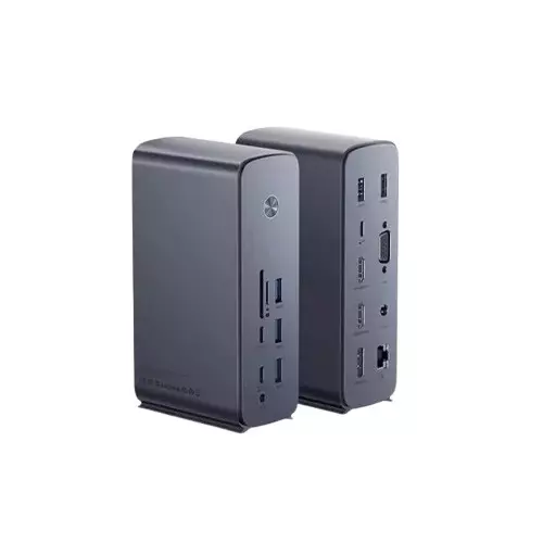 Upgrade your workspace with the Baseus UnionJoy Pro 17-Port Four-Screen Multifunctional HUB Docking Station, available now at Tech Land BD. This premium docking station transforms your laptop into a powerful workstation with four-screen display capability, supporting dual HDMI and dual DisplayPort outputs for seamless multitasking across multiple monitors. Featuring 17 versatile ports, including 2 USB-C ports, 4 USB-A 3.0 ports, and 2 USB-A 2.0 ports, it ensures lightning-fast data transfers and effortless connectivity for all your peripherals. Stay connected with the built-in Ethernet port for stable wired internet, while the microSD and SD card slots provide convenient storage expansion. The sleek grey design complements any setup, and the dual audio ports enhance your audio experience. Whether you're a professional needing an efficient workstation or a gamer seeking expanded connectivity, the Baseus UnionJoy Pro delivers unmatched performance and convenience. Simplify your workflow and maximize productivity with this all-in-one docking solution—available exclusively at Tech Land BD, your trusted destination for premium tech accessories in Bangladesh!