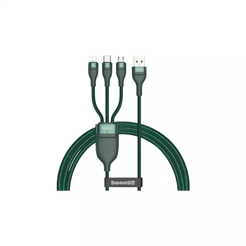 Baseus USB Male to Micro USB Type-C Male 1.2M Lightning Charging Data Cable (Green)