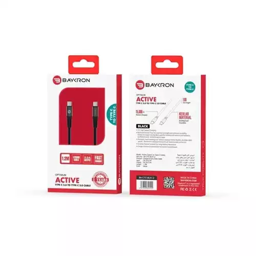 The Baykron Type C to Type C 1.2M 3A Cable is a high-quality charging cable designed for efficiency and durability. It supports 3A High Speed Charging, ensuring your devices are powered up quickly. The cable is 1.2 meters long, making it versatile for use in various settings. One of its standout features is its construction with Kevlar fiber, a material known for its superior strength and durability, used in bulletproof vests, crash helmets, surfboards, and extreme sports gear. This ensures that the cable can withstand heavy use without compromising its performance. The cable is encased in a premium, hardwearing, and fishnet braided jacket that is flexible and durable. The aluminum casing protects the circuit board inside the connector, further enhancing its durability. The cable also features a longer connector for better bend lifespan, able to withstand over 15000 bends. It comes in a sleek black color, adding a touch of elegance to its robust design.