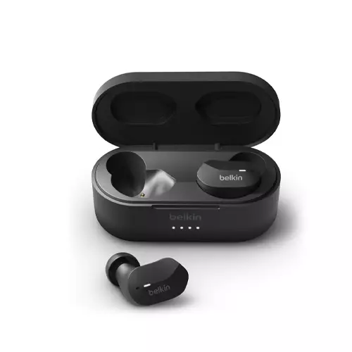 Experience the impactful bass and crystal-clear mids and highs of Belkin sound. Belkin SoundForm AUC001BTBK Earbuds Our True Wireless Earbuds accompany three sizes of ear tips, providing all-day comfort and noise isolation with its sealed in-ear fit.