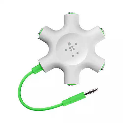 The only thing better than listening to your favorite song or watching your favorite show or movie is sharing the experience with your friends and family. The Belkin RockStar makes it easy. Just plug in any mobile device with music or movies on it -- such as your iPad, phone or tablet -- connect up to five headphones, and start sharing. It works with all devices with an auxiliary port. Even better, the sound and volume maintain the same level of quality, regardless of how many devices are connected.