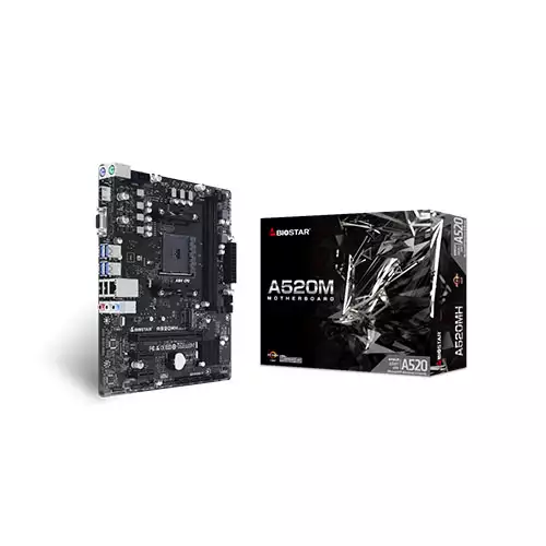 The Biostar A520MH motherboard is a Micro ATX form factor board that supports Socket AM4 and is compatible with 3rd Gen Ryzen processors (Matisse/Renoir) as well as Ryzen 4th Gen (Vermeer) processors. It also supports future AMD Ryzen processors with a BIOS update.The motherboard has two DDR4 DIMM memory slots that support a maximum of 64 GB memory, with support for DDR4 4400+(OC) / 4000(OC) / 3800(OC) / 3600(OC) / 3200/ 2933 / 2667 / 2400 / 2133 / 1866, depending on the CPU model. The integrated video is dependent on the CPU model and supports DirectX 12 and HDCP.Storage options on the motherboard include 4 x SATA III connectors that support AHCI & RAID 0, 1, 10, and 1 x M.2 (M Key) Socket that supports M.2 Type 2242/ 2260/ 2280 SSD modules and has support for PCIe 3.0 x 4 (32Gb/s) and SATA III (6.0Gb/s) SSDs.The Biostar A520MH motherboard has Realtek RTL8111H LAN and audio codec ALC887, with 7.1 channels, high definition audio, and Hi-Fi on the front. It also has 6 x USB 3.2 (Gen1) ports, 6 x USB 2.0 ports, and 1 x PCIe 3.0 x 16 slot that supports PCIe 3.0 x 16 mode with AMD Ryzen processors (Matisse only) and PCIe 3.0 x 16 mode AMD Ryzen with Radeon Vega Graphics processors (Renoir only).The rear I/O of the motherboard includes 1 x PS/2 Keyboard, 1 x PS/2 Mouse, 1 x HDMI Port, 1 x VGA Port, 1 x LAN port, 4 x USB 3.2 (Gen1) Ports, 2 x USB 2.0 Ports, and 3 x Audio Jack. The internal I/O includes 4 x SATA III (6.0Gb/s) Connectors, 2 x USB 2.0 Header (each header supports 2 USB 2.0 ports), 1 x USB 3.2 (Gen1) Header (each header supports 2 USB 3.2 (Gen1) ports), 1 x 8-Pin Power Connector, 1 x 24-Pin Power Connector, 1 x CPU Fan Connector, 1 x System Fan Connector, 1 x Front Panel Header, 1 x Front Audio Header, 1 x Clear CMOS Header, 1 x Internal Stereo Speaker Header, and 1 x COM Port Header.The motherboard supports CPU/System Temperature Monitoring, CPU/System Fan Monitoring, Smart/Manual CPU Fan Control, and CPU/DDR Voltage Monitoring. The Biostar A520MH motherboard comes with two SATA cables, one I/O shield, one DVD driver, and one quick guide, and has support for Windows 10 (64bit) / 11 (64bit). It also supports 100% solid capacitor, BIO-FLASHER, A.I FAN, and PCIe M.2 32Gb/s. Order now from Techland BD for the best price in bd.
