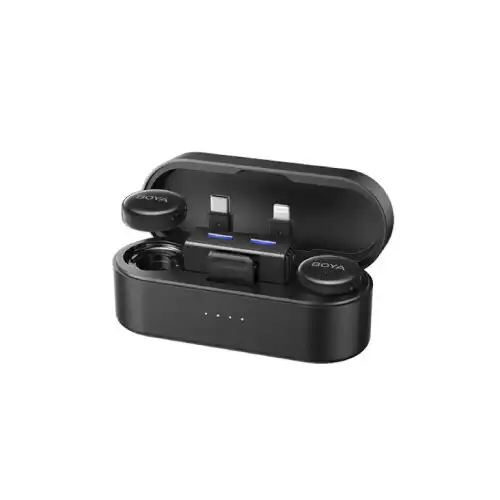 The Boya BOYALINK 3 AI-Powered Wireless Microphone is an ultra-compact, button-sized audio solution built for modern creators, journalists, YouTubers, and professionals who need portable and intelligent wireless audio without sacrificing sound quality. Weighing just 9g with a diameter of 26.1mm, the transmitter blends seamlessly with any outfit or setup, while still delivering powerful performance. It features a 6mm condenser microphone, a signal-to-noise ratio above 85 dB, and supports 48 kHz / 24-bit audio resolution, ensuring that every word is captured with clarity and detail. The system also supports mono, stereo, and safety track output modes, giving users flexibility during post-production. Equipped with AI Noise Cancellation technology, it offers selectable levels of background noise reduction at -15dB (light) and -40dB (strong), making it ideal for use in both quiet indoor spaces and noisy outdoor environments. The frequency response of 20Hz–20kHz, custom EQ voice enhancement, and low-cut filter options at 75Hz and 150Hz ensure the best possible vocal clarity and tonal balance. The 300m transmission range and magnetic or plastic clip design allow users to move freely and mount the mic securely, whether on clothing or equipment. Although it doesn’t support onboard recording, it enables monitoring, gain control, and playback without unplugging the receiver, making real-time adjustments simple and intuitive. The built-in lithium-ion battery provides up to 6 hours of continuous use, and the system supports charging while recording, ensuring uninterrupted performance during longer sessions. The receiver supports dual device output and comes with USB Type-C, Lightning, and 3.5mm connectors, making it universally compatible with smartphones, cameras, and other audio devices. The charging case features a 1500mAh battery capacity, compact dimensions of 108 × 42 × 42 mm, and weighs just 176g, making it easy to carry and recharge on the go.