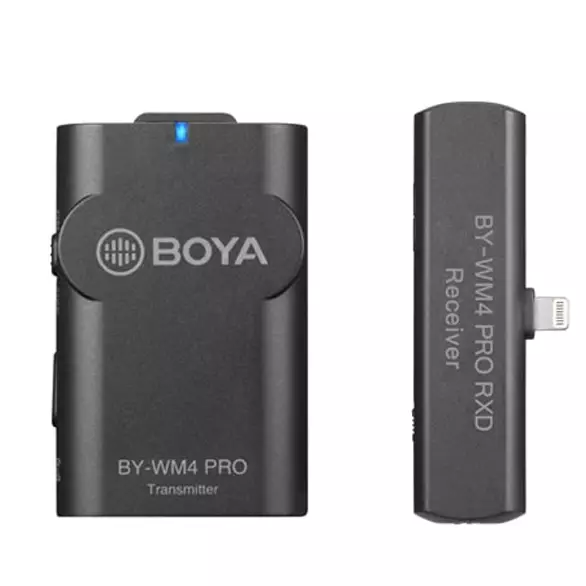 The Boya BY-WM4 PRO-K3 is a compact, entry-level wireless lavalier microphone system offering an easy-to-use, cost-effective, and all-inclusive solution for recording a single subject with your iOS mobile device. The system delivers improved sound quality over the built-in mics on cameras and mobile devices to supply clear, intelligible speech for, Super-clear recording sound. Up to 60m (197ft) operation range (without obstacles).