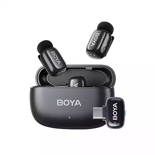 BOYA Mini-12 Wireless Microphone System is a compact, lightweight, and feature-rich audio solution designed for content creators, vloggers, journalists, and professionals who demand high-quality sound in a portable and user-friendly package. Available for purchase at Tech Land BD, this wireless microphone system includes two transmitters and two receivers (USB-C and Lightning), making it compatible with a wide range of devices, including smartphones, cameras, and computers. The system operates on a stable 2.4GHz frequency, offering a transmission range of up to 100 meters, ensuring clear and interference-free audio even in challenging environments. The transmitters are incredibly lightweight at just 5g and feature a metal clip for secure attachment to clothing, while the 6mm condenser microphone delivers studio-quality audio with a frequency response of 20Hz-20kHz, a signal-to-noise ratio of >80dB, and a maximum SPL of 120dB. With a sample rate of 48kHz and 16-bit depth, the BOYA Mini-12 ensures high-resolution audio recording, while the one-click noise cancellation and 3-level voice changer enhance audio clarity and versatility. Each transmitter provides up to 6 hours of battery life, and the included charging case, with a 260mAh battery, offers additional power and portability. The compact design of the charging case (67.4×48.4×22.5mm) and the lightweight carrying bag make it easy to transport, while the low latency of 25ms ensures synchronized audio and video recording. Whether you're recording for YouTube, live streaming, conducting interviews, or creating podcasts, the BOYA Mini-12 Wireless Microphone System is a reliable and versatile tool for capturing professional-grade audio. Visit Tech Land BD to purchase this exceptional microphone system and elevate your audio recording experience to new heights.What devices are compatible with the BOYA Mini-12 Wireless Microphone?