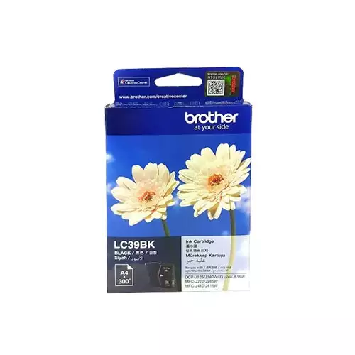 The Brother LC39BK Ink Cartridge Black, now conveniently available at TechLand BD. Compatible with a wide range of Brother printers including DCP140W, MFCJ265W, MFCJ415W, MFCJ410, and DCPJ125, this black ink cartridge stands as a hallmark of Brother's commitment to delivering top-notch printing solutions. Whether you're printing reports, documents, or captivating graphics, the Brother LC39BK ensures every printout boasts sharp, clear, and professional-quality results. Featuring a duty cycle of up to 300 pages, the Brother LC39BK Ink Cartridge Black is designed to handle the demands of both home and office environments. Say goodbye to frequent cartridge changes and enjoy uninterrupted printing sessions with this high-yield ink cartridge. Its efficient design allows you to focus more on your tasks and less on cartridge replacements, enhancing your overall printing experience. Crafted using advanced printing technology, the Brother LC39BK consistently delivers rich black tones with exceptional clarity and precision. Whether you're printing text or images, every detail is rendered accurately, ensuring that your prints always leave a lasting impression. Additionally, the cartridge's easy installation process means you can replace it quickly and effortlessly, minimizing downtime and maximizing productivity. At TechLand BD, we understand the importance of reliable printing supplies. That's why we're proud to offer the Brother LC39BK Ink Cartridge as part of our extensive collection of printer accessories. Whether you're a student, a professional, or a small business owner, you can trust Brother to provide consistent, high-quality results that meet your printing needs. Upgrade your printing setup today with the Brother LC39BK Ink Cartridge Black, available now at TechLand BD. With Brother's reputation for excellence and reliability, you can trust that your documents will always look their best. Say goodbye to faded prints and smudged text; with Brother, you can expect nothing but superior printing solutions that exceed your expectations.In conclusion, the Brother LC39BK Ink Cartridge Black offers unmatched printing quality and reliability. With its high-yield capacity and exceptional print clarity, it's the perfect choice for anyone seeking dependable printing solutions. Get yours today at TechLand BD and experience the difference Brother can make in your printing experience.