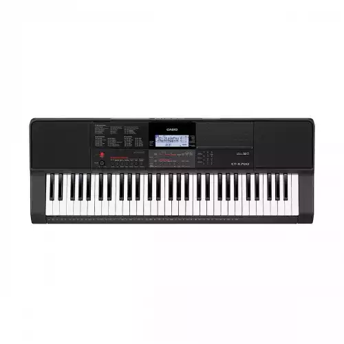 The CASIO CT-X700 comes with the AiX Sound Source, which can produce a wide range of sound qualities from powerful bass tones to clear high tones. The exceptional computing power of the high-performance LSI reproduces the natural charm of acoustic instrument sounds, such as the agreeable change in tone when a piano key is struck, the sensation of a drum performance, or soaring strings. The high-speed digital signal processor is also applied for each sound type, such as melody, backing drum and bass, or organ. Even the standard ensemble for a keyboard delivers distinct sound for each instrument for an expressive performance. The CASIO CT-X700 has a LCD screen with backlit. It displays helpful information for performances or lessons. It comes with 160 Track Song Bank. The keyboard has a USB port for easy connection to a computer. Up to 10 tracks can be saved to the keyboard in addition to the built-in tracks. The CASIO CT-X700 comes with a 1-year warranty.