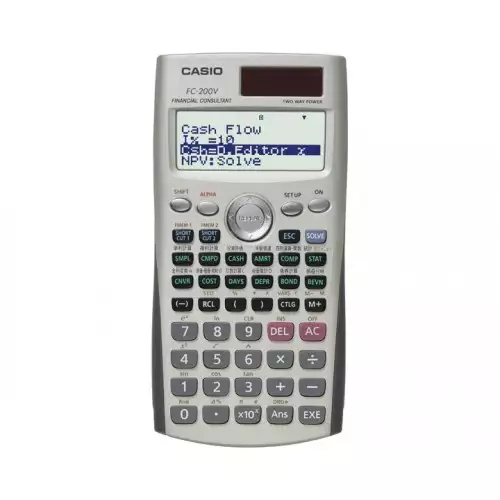 Casio FC-200V Financial Calculator comes with a Dot Matrix DisplayDual power and also has exclusive built-in functions like Cost/Sell/Margin etc. In this calculator , it has Dedicated buttons for Cost, selling price,or margin, Depreciation, Bond etc. This Financial Calculator featured with Simple & Compound Interest calculationInvestment appraisal (cash flow), Amortization, Converts between percentage interest rate and effective interest rate, Day calculation, Depreciation, Bond calculation, Break Even point calculation, Cost/Sell/Margin, Statistics, Slide-on hard case and Solar Plus with battery back-up. It is also designed with .49”H x 3.15”W x 6.34”L Dimensions, 3.7 oz. Weight. This Casio Financial Calculator has 01 year warranty.