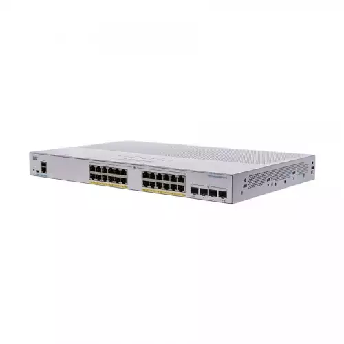 The Cisco CBS350-24P-4G PoE network switch has a total of 28 ports. Out of these 28 ports, there are 24 PoE+ ports and 4 SFP ports. A very large network can be covered with these ports.
