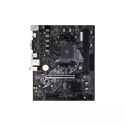 Colorful BATTLE-AX B550M-D PRO V14 DDR4 AMD AM4 M-ATX Motherboard is designed for gamers, PC builders, and tech enthusiasts seeking reliable performance and advanced features. Built on the AMD B550 chipset, it supports a wide range of AMD Ryzen processors with the AM4 socket, providing flexibility and power for both gaming and professional workloads. The motherboard offers dual DDR4 memory slots, supporting up to 64GB of RAM with speeds up to 3600MHz (OC) and full XMP compatibility for efficient multitasking and fast data access. Storage options include one M.2 PCIe 4.0 x4/SATA slot and four SATA 6Gb/s ports, supporting RAID 0, 1, and 10 configurations. Its rear I/O panel features multiple connectivity options, including four USB 3.2 Gen1 Type-A ports, two USB 2.0 ports, HDMI 1.4 up to 4K 30Hz, VGA, a 2.5G network port, and three audio jacks. Additional onboard connectors support RGB lighting, front panel audio, USB expansion, and fan control. Expansion is made easy with one PCIe 4.0 x16 slot and one PCIe 3.0 x4 slot, ideal for graphics cards, NVMe storage, and other add-on devices. Equipped with Realtek ALC897 audio for 5.1-channel output and advanced hardware monitoring for temperature, voltage, and fan speeds, the Colorful BATTLE-AX B550M-D PRO V14 ensures a stable, customizable, and high-performance platform for modern computing needs.