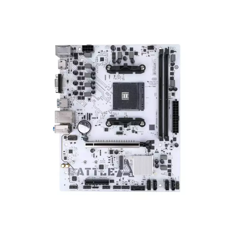 Introducing the Colorful BATTLE-AX B550M-T PRO V14 White Micro ATX Motherboard, a powerhouse of features designed to elevate your computing experience. Equipped with a 128M UEFI BIOS that supports multiple languages, it offers customization and ease of use. Powered by the advanced AMD B550 chipset, this compact M-ATX motherboard measures 197mm x 240mm, making it a perfect fit for smaller PC builds. The 5.1-Channel High Definition audio CODEC ensures crystal-clear sound for gaming and multimedia. You'll find versatile expansion slots, including a PCIe 4.0 x16 slot for graphics cards and a PCIe 3.0 x4 slot for other add-in cards. The inclusion of RTL8125 2.5Gbit LAN guarantees lightning-fast network connectivity. With 2 DDR4 memory sockets supporting up to 64GB of memory, DDR4-3600(OC)/3200/2933/2666/2400MHz support, and Extreme Memory Profile (XMP), this motherboard delivers top-notch memory performance. It also offers convenient hardware monitoring and power management features. This motherboard is built to support AMD Ryzen series processors, ensuring high-performance computing. Additionally, it features 1 M.2 slot for NVMe SSDs and 4 SATA 6Gb/s hard disk interfaces with RAID support. With a 3-year warranty, the Colorful BATTLE-AX B550M-T PRO V14 White Micro ATX Motherboard is a reliable and feature-rich choice, ideal for gamers and PC enthusiasts seeking top-tier performance in a compact form factor.