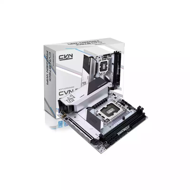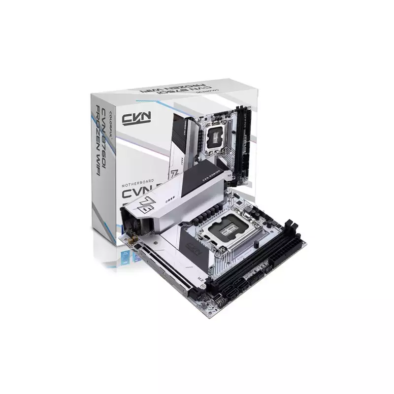 Introducing the Colorful CVN B760I FROZEN WIFI V20 Motherboard from the CVN series, a compact yet mighty powerhouse that ushers in the era of 13th and 12th generation Intel processors. Designed to adapt seamlessly to the LGA 1700 slot, it welcomes Intel® Core™, Pentium®, and Cylon® processors, ensuring you harness the full might of your CPU.With two DDR4 memory sockets, this motherboard can support up to 64 GB of memory. Each socket can handle up to 32 GB, offering ample memory capacity. You can tailor your memory configuration, ranging from DDR4-4800 (OC) to DDR4-2133MHz, and benefit from Intel® Extreme Memory Profile (XMP) and dual-channel memory technology for optimal performance.Featuring 2 M.2 slots and 4 SATA 6Gb/s hard disk interfaces, this motherboard empowers you to create RAID 0, RAID 1, RAID 5, and RAID 10 disk arrays using SATA hard disk devices. The M.2 slots support 2280 specification M.2 SSDs, operating at PCIe 4.0 x4 speeds for high-speed data transfer.The rear I/O interface is equipped with a range of USB ports, DP 1.2, HDMI 2.0 interfaces for high-resolution displays, a 2.5G network interface, Wi-Fi 6 antenna interfaces, and audio connections. It even includes a convenient clear CMOS button for easy troubleshooting.A PCIe 5.0 x16 slot ensures you can accommodate powerful expansion cards, offering the versatility to build the system of your dreams.Featuring a 128M UEFI BIOS that supports multiple languages, this motherboard provides a user-friendly experience, ensuring customization and ease of use.Power Management: You have the flexibility of S3, S4, network S5 wake-up, regular power-on, and power-on, facilitating efficient energy management and system operation.Control your CPU and system fan speeds, monitor CPU and system temperatures, and oversee voltage levels with precision, ensuring optimal system performance.The RTL8125 2.5Gbit network card, AX201/AX200 WiFi 6 wireless network card, and Bluetooth 5.2 provide comprehensive connectivity options. The 5.1 Channel sound card ensures immersive audio for your gaming and multimedia needs.With a compact ITX form factor measuring 170mm x 170mm, this motherboard is perfect for space-conscious builds while delivering robust performance.The Colorful CVN B760I FROZEN WIFI V20 Motherboard offers an array of features, from robust memory support and versatile storage options to advanced connectivity, all packed into a compact ITX configuration. This motherboard ensures that you can build a high-performance system in a small form factor, providing the power you need for gaming and content creation while also accommodating modern processors.