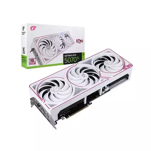 Colorful iGame GeForce RTX 5070 Ti Ultra W OC 16GB-V is a high-performance graphics card designed for gamers, content creators, and professionals who demand cutting-edge power and efficiency. Built on NVIDIA’s latest Ada Lovelace architecture, this GPU features 8,960 CUDA cores, a boost clock of up to 2497MHz (with One-Key OC), and 16GB of ultra-fast GDDR7 memory running at 28Gbps over a 256-bit bus, delivering an impressive 896GB/s memory bandwidth for seamless 4K gaming, AI workloads, and real-time ray tracing. The card’s triple-fan cooling system with Auto Stop Technology ensures optimal thermal performance while maintaining low noise levels, making it ideal for extended gaming sessions and intensive rendering tasks. A 300W TDP requires a 750W power supply and uses the latest 16-pin power connector for efficient power delivery. Connectivity options include 3x DisplayPort 2.1b and 1x HDMI 2.1b, supporting high-refresh-rate 8K displays and multi-monitor setups. Advanced NVIDIA technologies like DLSS 4, Reflex, and Studio drivers enhance gaming smoothness, reduce latency, and accelerate creative workflows. The sleek black-and-white design (331×139.3×59.7mm, 1.86kg) fits most mid- to full-tower cases, while RGB lighting customization adds aesthetic appeal. Whether for competitive gaming, 3D rendering, or AI development, the RTX 5070 Ti Ultra W OC delivers unmatched performance and future-proofing.