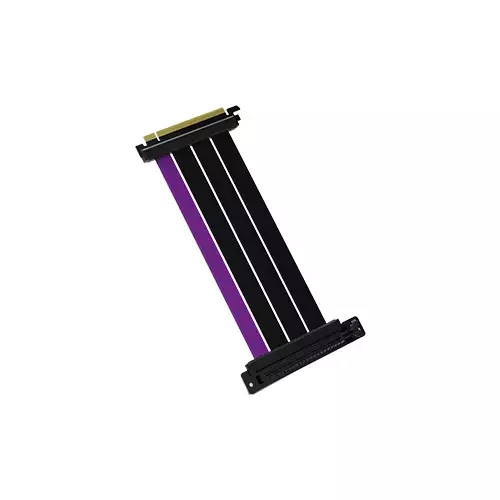 The Cooler Master Riser Cable PCIe 4.0 x16 - 300mm is designed for greater data transmission efficiency, maximum flexibility and durability. High quality plastics grant increased cable flexibility and strength for the tightest PCI card installations, while the heavy-duty shielding prevents electromagnetic interference from degrading signal quality. The multi-layer coated PCB provides the best-in-class cable flex, moisture resistance and performance under high thermal loads. PCIE 4.0 COMPATIBLE. While Providing twice the bandwidth of PCIe 3.0, the Gen 4.0 riser cable remains backwards compatible with a maximum transfer rate of over 64Gb/s (bi-directional) and fully supports the 16GT/s bit rate of PCIe 4.0 devices. Cooler Master Riser Cables (PCI-E 4.0 x16) are manufactured with high quality 30 AWG tinned copper wires to ensure minimal cable signal delay. This product features 96 ground wires in total with premium EMI shielding technology applied, designed to provide an electromagnetic interference-free data transmission experience.