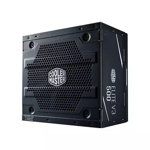 The Elite V3 500W Power Supply from Cooler Master. Capable of delivering up to 500W power output over a single +12V rail, this ATX 12V power supply comes with a non-modular design, meaning all its sleeved cables are attached to the device.