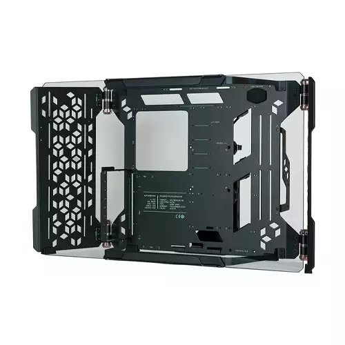 The MasterFrame 700 is a highly customizable open-air frame that can convert between a showcase PC chassis or a highly flexible test bench. MasterFrame 700 features a 3-part design consisting of two side wings and a fully-featured motherboard tray. Four specially-designed friction hinges hold the side wings to the motherboard tray, allowing both full ranges of motion during assembly and stability when built, perfect for custom water-cooling loops.