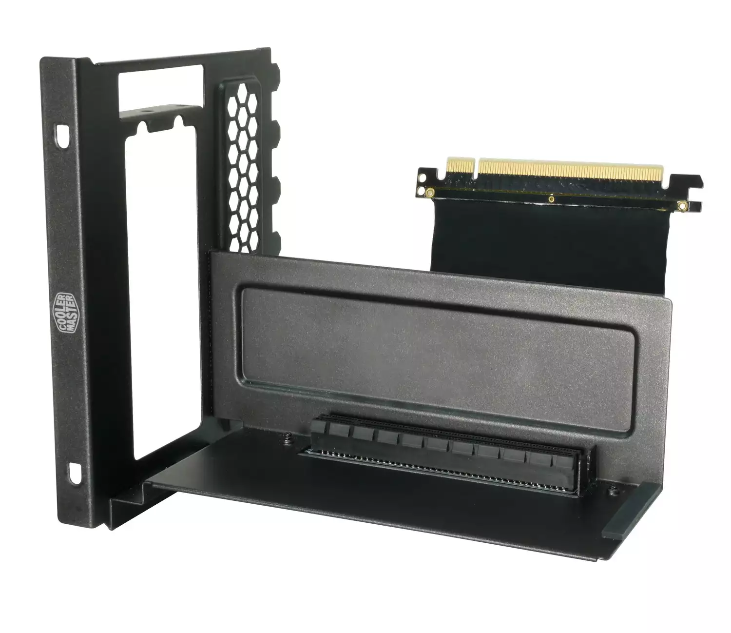 Designed for our MasterCase and MasterBox ATX Series case, this MasterAccessory allows you to vertically display a graphics card at your PCI slot area to nicely showcase it. The tray is made from high quality steel and is covered with stylish metallic grey paint. Part of our MasterAccessory line, this tray is made to fit into all the MasterCase and MasterBox ATX Series. Installation couldn't be easier, install your graphics card on the holder, connect it to your motherboard with the included riser card , and you're ready to go. Click here for more Pc accessories