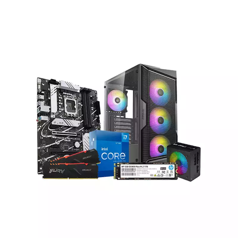 Upgrade your gaming and computing experience with a powerful combination of hardware components. The Intel Core i7-12700 12th Gen Alder Lake Processor promises enhanced performance, while the ASUS PRIME B760-PLUS D4 12th & 13th Gen Motherboard ensures efficient connectivity and stability. The Kingston Fury 8GBx2 3200MHz DDR4 RGB Desktop RAM delivers optimal memory performance and aesthetics with RGB lighting. The HP EX900 PLUS 1TB M.2 PCIe NVMe Internal SSD offers high-speed storage for your data needs. With the Corsair CX550F RGB 550 Watt Power Supply, your system stays reliably powered, and the ANTEC AX61 ELITE Mid-Tower Gaming Case provides a stylish and functional housing for your components. All these components come with a 3 Years Limited Warranty, ensuring your investment is protected. Bangladesh's top retailer of computer hardware and applications is Techland BD. A hallmark of Techland BD is its top-notch client support. They have a helpful and knowledgeable crew that is always willing to help customers. The large selection of Desktop PC available at Techland BD is well recognized. The large selection of Budget PC available at Techland BD is well recognized.