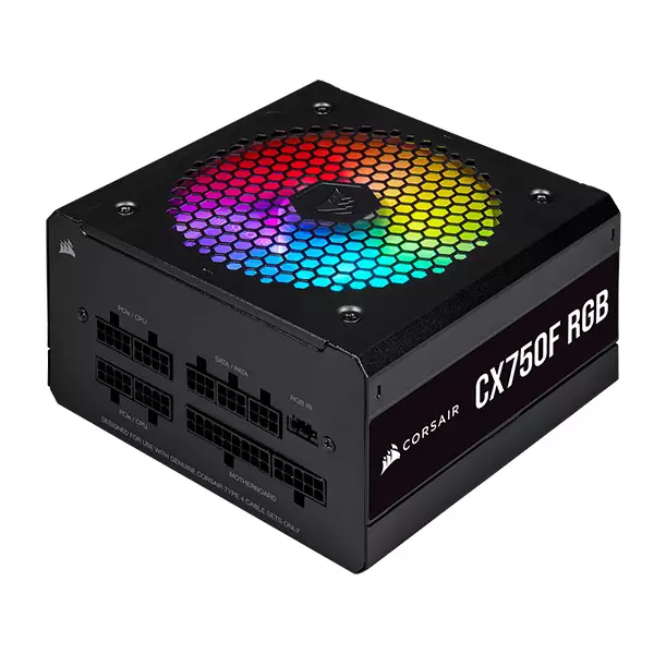 CORSAIR CX-750F RGB Series fully modular power supplies deliver reliable 80 PLUS Bronze-efficient power to your system, alongside vibrant, customizable lighting from a 120mm RGB fan and a clean aesthetic.