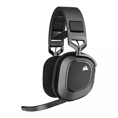 The CORSAIR HS80 RGB WIRELESS Headset mixes the iconic CORSAIR design with Great audio quality, industry-leading wireless technology and durable build quality.