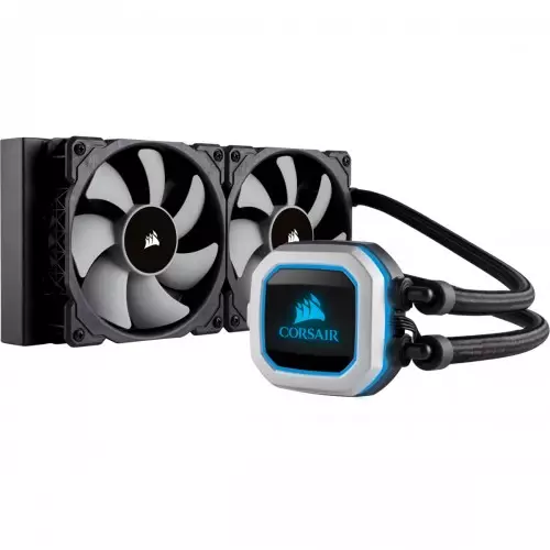 The CORSAIR Hydro Series H100i PRO is an all-in-one RGB liquid CPU cooler with a 240mm radiator built for low-noise cooling and bold styling with an RGB LED pump head. Vibrant RGB LED pump head produces vivid lighting effects to match your build. Two 120mm ML Series magnetic levitation bearing PWM fans deliver incredible airflow and static pressure at low noise levels. PWM fan speed control allows you to run your fans anywhere between 400 RPM to 2,400 RPM for complete quiet or maximum cooling. CORSAIR iCUE software brings your system to life with dynamic synchronized RGB lighting, customizable fan speeds to silence fans, and advanced system monitoring all from a single intuitive interface. Zero RPM cooling profiles allow fans to stop entirely at low temperatures, completely eliminating fan noise. Advanced pump speed control options to maximize performance or minimize noise. Modular, tool-free mounting bracket for quick and painless installation on most major CPU sockets. Compatible with Intel 115x, Intel 2011/2066, AMD AM3/AM2, AMD AM4, and AMD TR4.