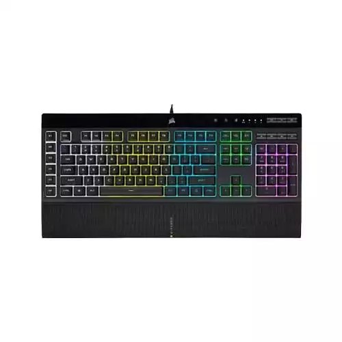 The CORSAIR K55 RGB PRO Gaming Keyboard lights up your desktop with five-zone dynamic RGB backlighting and powers up your gameplay with six dedicated macro keys. CORSAIR K55 RGB Pro Gaming Keyboard Customize the RGB lighting effects on the keyboard, assign colors to each lighting zone, or program your own effects using CORSAIR iCUE. You'll never have to worry about spill accidents or dust build-up on your keyboard thanks to IP42 protection. Use the six dedicated macro keys to record onboard, program more complex macros with iCUE, or assign streaming commands with Elgato Stream Deck.