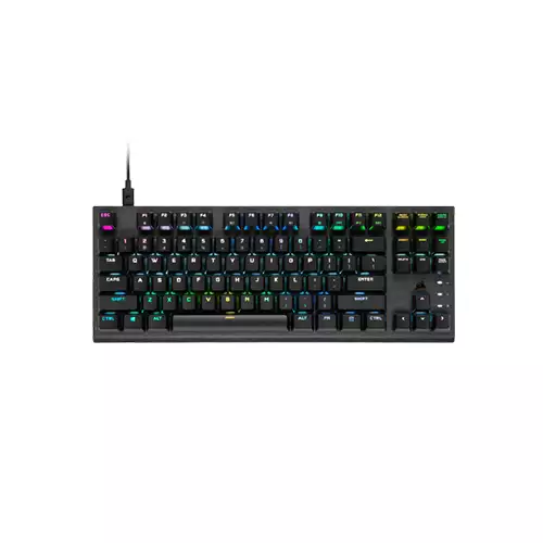 Media Controls YN: Yes Form Factor: Tenkeyless On-Board Memory: Yes WIN Lock: FN Shortcut Media Control: FN Shortcuts Palm Rest: No Keyboard CUE Software: Supported in iCUE Cable Type: Tangle-free rubber |