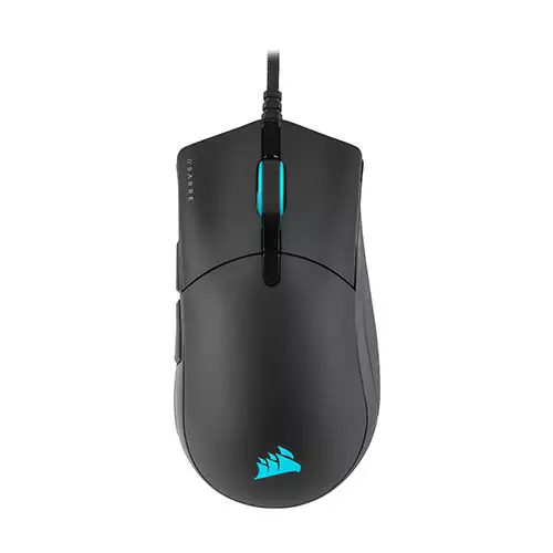 The CORSAIR SABRE RGB PRO Gaming Mouse From CORSAIR.The CORSAIR SABRE RGB PRO Gaming Mouse is designed with feedback from esports pros, weighing an ultra-light 74g and equipped with a drag-reducing flexible paracord cable for responsive, unhindered movements. CORSAIR SABRE RGB PRO Gaming Mouse are built for and tested by top esports professionals.Equip yourself with the CORSAIR SABRE RGB PRO Gaming Mouse, a lightweight competition-grade gaming mouse equipped with a drag-reducing flexible paracord cable and ultra-responsive QUICKSTRIKE buttons. The CORSAIR SABRE RGB PRO Gaming Mouse features a comfortable ergonomic shape, drag-reducing paracord cable, and replaceable 100% PTFE glide pads to support your rapid movements, twitch reflexes, and fast-paced gameplay as you compete. Short travel means quicker clicks, which is why the CORSAIR SABRE RGB PRO Gaming Mouse is equipped with CORSAIR QUICKSTRIKE Buttons. Utilizing springs and metal hinges balances the keys and creates zero gap between the primary mouse buttons and their OMRON switches, ensuring superb speed, responsiveness, and consistency with every click.