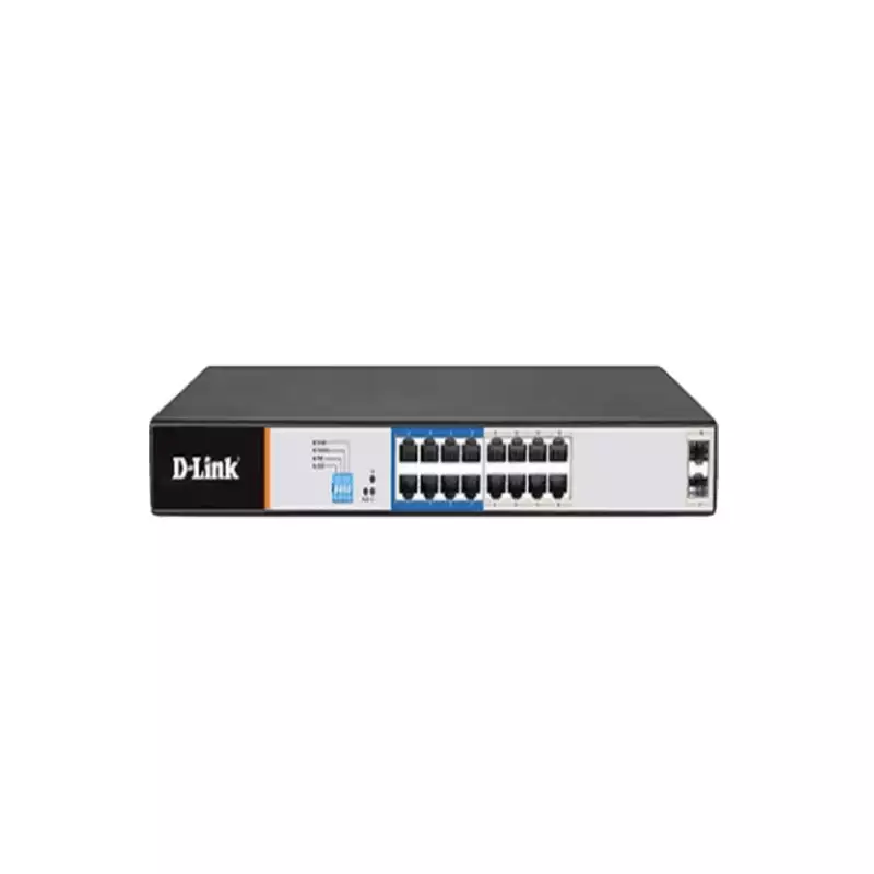 The D-Link DGS-F1018P-E 18 Port Unmanaged PoE Switch is a high-performance network switch designed to provide seamless connectivity and power over Ethernet (PoE) capabilities. With its compact desktop form factor, this switch is suitable for small to medium-sized businesses, offices, and home networks. Featuring a total of 18 ports, including 16 PoE ports and 2 SFP ports, the DGS-F1018P-E allows for fast and reliable data transfer. The 16 PoE ports support the IEEE 802.3at/af PoE standards, enabling you to power compatible devices such as IP cameras, VoIP phones, wireless access points, and more. The switch has a power budget of 150W, providing up to 30W per port, allowing simultaneous powering of multiple PoE devices. With a switching capacity of 36 Gbps, the DGS-F1018P-E ensures smooth and efficient data transmission. It adopts a store-and-forward transmission method and supports IEEE 802.3x full-duplex Ethernet data link layers, ensuring reliable packet forwarding. The switch also includes Auto MDI/MDI-X adjustment on all ports, simplifying installation and configuration. Designed with user convenience in mind, the D-Link DGS-F1018P-E features a fanless design, resulting in silent operation and increased reliability. The front panel of the switch includes LED indicators for power and link/activity status, providing at-a-glance monitoring. This switch also offers advanced features such as lightning protection (6KV) and a large MAC address table capable of storing up to 8K addresses. It operates at the OSI Layer 2 and supports various network standards, including IEEE 802.3u Fast Ethernet and IEEE 802.3ab Gigabit Ethernet. The D-Link DGS-F1018P-E is backed by a 1-year warranty (without adapter) and is made in China with components originating from Taiwan. With its powerful PoE capabilities, high-performance specifications, and user-friendly design, this switch is an excellent choice for network expansion and management.