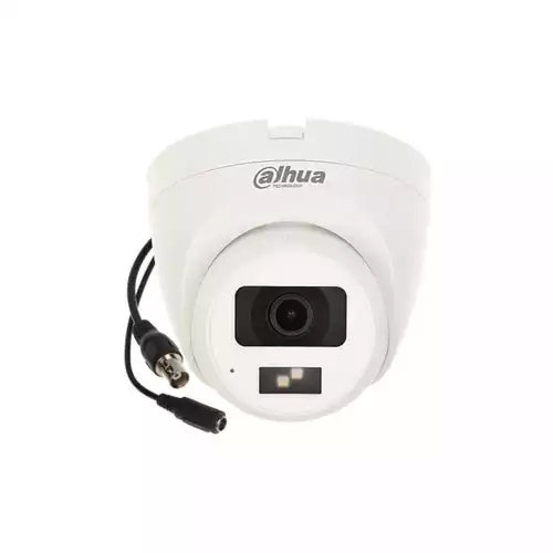 The Dahua DH-HAC-HDW1209CLQP-LED-S2 is equipped with a 2MP CMOS sensor that delivers a resolution of 1080p for clear video quality. It operates in full-color mode both day and night, with infrared night vision up to 20 meters. The camera has a 2.8mm fixed lens, ensuring a broad field of view suitable for capturing expansive areas. It requires a 12V DC power supply and consumes approximately 3.1W of power. The camera is designed with a plastic dome body, making it lightweight yet durable for indoor environments. It also comes with a 1-year warranty, offering peace of mind for users.