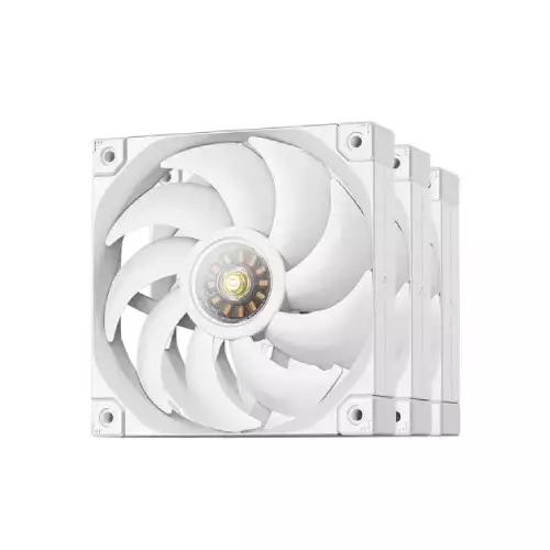The DeepCool FT12 3 IN 1 120mm Case Fan (White) is a premium cooling package designed to elevate airflow efficiency, thermal performance, and aesthetics for modern PC builds. Engineered for users who demand maximum cooling potential, each fan in this triple-pack delivers an impressive combination of power, silence, and durability. Featuring a Fluid Dynamic Bearing, the FT12 fans ensure long-term reliability with ultra-smooth rotation, reduced friction, and significantly lower noise during prolonged operation. The fans operate at a dynamic speed range of 500±200 RPM to 2150 RPM±10%, allowing your system to intelligently adjust cooling based on workload demands. With a high airflow output of 75 CFM and robust static pressure of 4.2 mmAq, this fan set excels in pushing air through dense radiators, heatsinks, and compact cases, making it ideal for both air-cooled and liquid-cooled systems. Despite its exceptional cooling capability, the FT12 maintains noise levels ≤32 dB(A), ensuring a quiet and comfortable computing environment. Its 120×120×25 mm universal design makes it compatible with most chassis layouts and radiator brackets. The sleek white color adds a clean, modern aesthetic that blends perfectly with minimalist or white-themed builds. Powered by 12 VDC, the fans consume just 3.6W, making them energy-efficient without compromising performance. With a 4-pin PWM connector, you gain precise control over RPM adjustments through your motherboard’s fan management software, ensuring optimal cooling based on system temperature. Each fan weighs just 188 g, offering lightweight durability and stability with minimal vibration. The FT12 is crafted with superior materials that ensure long-lasting operation, supported by a generous 3-year warranty, reflecting DeepCool’s commitment to quality and reliability. Whether you’re building a gaming powerhouse, a productivity workstation, or a stylish showcase PC, the DeepCool FT12 3 IN 1 White fan kit combines performance, elegance, and efficiency to meet your cooling needs with ease.