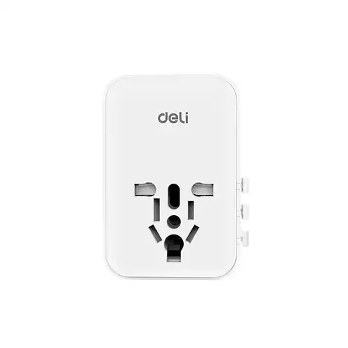 Deli ET767 45W Universal Travel Adapter is an essential companion for travelers, providing safe and convenient charging for multiple devices worldwide. Designed to support EU, UK, US, and AU standard plugs and sockets, this compact adapter allows you to power your gadgets anywhere you go without worrying about compatibility.