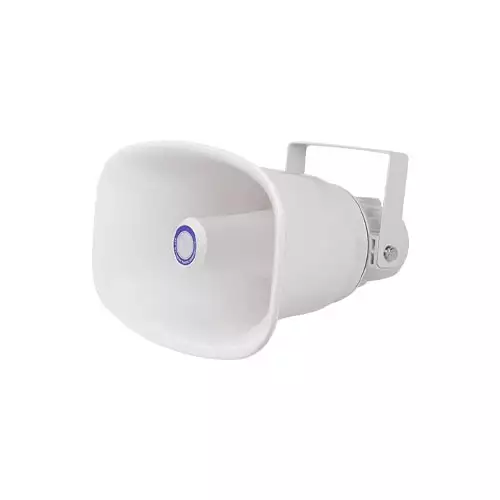 The DSPPA DSP1650 is a robust, high-power 50W weatherproof horn speaker designed for demanding outdoor and industrial sound reinforcement applications. Built to deliver clear and powerful audio over long distances, this speaker is ideal for use in large open areas such as factories, transportation hubs, stadiums, schools, construction sites, and public gathering spaces. With a rated power of 50 watts and multiple power tap options (0-6W-12.5W-25W-50W-8Ω), the DSP1650 offers flexible installation in both high and low-power public address systems. The speaker supports 100V line input or 8Ω connections, allowing it to be seamlessly integrated into standard PA systems. Featuring a wide sound pressure level of up to 123dB (±2dB) and a high sensitivity of 106dB (±2dB), the DSP1650 ensures that voice announcements and warning signals remain clear and intelligible even in noisy environments. The frequency response range of 280Hz to 4.5kHz is optimized for voice clarity, ensuring crisp and sharp sound output across its entire range. Constructed from high-quality materials, the speaker housing is made of durable ABS plastic with a steel mounting bracket, offering excellent resistance to environmental stress. The DSP1650 is IP66 rated, making it fully weatherproof and suitable for continuous outdoor use in harsh conditions including rain, dust, and temperature variations. It can operate effectively in temperatures ranging from -20°C to +40°C, with a humidity tolerance of 45% to 85%. With dimensions of 404mm (W) × 266mm (H) × 376mm (L) and a weight of 4.2kg, the speaker is compact yet sturdy. The white finish offers a clean and professional look, and OEM color options are available to match custom installation aesthetics. Whether used for emergency communication, general announcements, or crowd control, the DSPPA DSP1650 delivers reliable and consistent performance. Its versatile power tap settings, durable build, and weatherproof design make it a go-to choice for high-demand public address environments.FAQs: