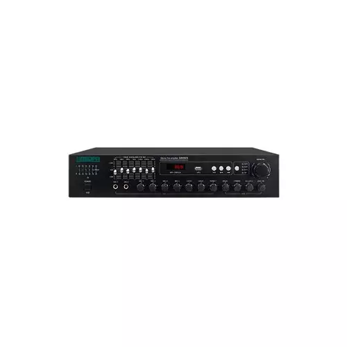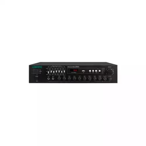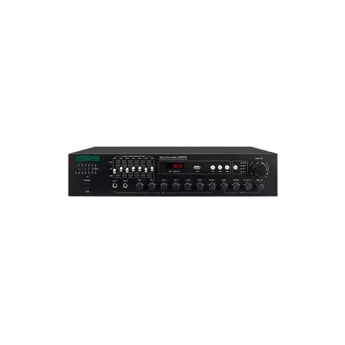 The DSPPA MK6920 is a professional-grade 2x120W stereo mixer amplifier, ideal for audio systems in conference rooms, educational institutions, houses of worship, and commercial venues. Designed to deliver superior audio performance, this amplifier features a powerful and stable output at 120W per channel with an impedance of 8Ω, ensuring clear and consistent sound in a variety of applications. The MK6920 provides comprehensive input options with high sensitivity, including microphone inputs rated at 5 ± 0.5mV and line inputs at 250 ± 50mV. An MP3 input (-10dB) is also available for media playback, offering convenient integration with digital sources. The unit supports a line output voltage of 950 ± 150mV and maintains a total harmonic distortion of ≤0.5%, ensuring precise sound reproduction even under normal operating conditions. With a frequency response of 20Hz–20kHz for line inputs and 80Hz–20kHz for microphone inputs (both ±3dB), the MK6920 covers the full audio spectrum with high fidelity. Users can fine-tune audio with an extensive 7-band equalizer for microphones (from 64Hz to 15kHz) and adjustable bass (100Hz ±12dB) and treble (10kHz ±12dB) controls for line and MP3 inputs. This allows precise customization of sound profiles to suit different acoustic environments. The amplifier is engineered for reliability and long-term use, featuring built-in protection against overload, over-temperature, and short circuits. Phantom power support (+48V) ensures compatibility with professional condenser microphones, enhancing its utility in speech-focused settings. With a signal-to-noise ratio of ≥75dB, the MK6920 delivers clean audio with minimal background noise, making it ideal for both speech and music applications. It operates on a standard AC220V/50Hz power supply and is built in a durable chassis measuring 483×310×88 mm. The included packaging (520×395×170 mm) ensures safe transport and storage. Whether for live speech, background music, or mixed-media environments, the DSPPA MK6920 offers the flexibility, power, and control needed for professional sound reinforcement.FAQs: