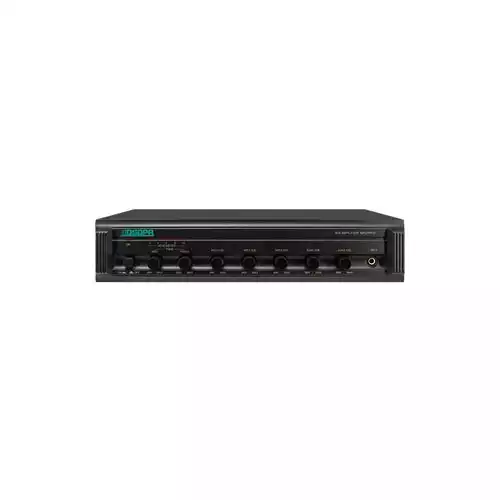 The DSPPA MP200PIII is a 60W classical mixer amplifier designed to deliver dependable performance in small to medium-sized audio setups. Combining simplicity with functionality, this amplifier is ideal for background music and voice broadcasting in environments such as offices, shops, schools, restaurants, and small places of worship. With a rated output power of 60W, the MP200PIII provides clear and stable audio performance suitable for distributed speaker systems. It supports both 70V and 100V high-impedance speaker outputs, along with a 4-16Ω low-impedance option, offering flexibility in system configuration. This makes it an excellent choice for public address systems that require multiple speakers distributed across different zones or rooms. The amplifier features a microphone input with a sensitivity of ≤3.3mV (unbalanced), ensuring that even low-level microphone signals are amplified effectively. Additionally, the AUX output delivers ≥700 mV, enabling easy connection to external recording or amplification devices. The unit supports multiple input sources, allowing for smooth integration into existing sound systems. Designed for consistent performance, the MP200PIII offers a frequency response range of 80 80Hz to 16 kHz (±3 dB), delivering natural and balanced sound suitable for speech and light background music. With a signal-to-noise ratio (S/N) of ≥74 dB for line inputs, it ensures minimal background noise for clean audio output. The distortion level remains low at ≤1% (1 kHz under normal operation), preserving audio clarity even at higher volumes. The amplifier also features an output regulation of ≤3 dB from no load to full load, ensuring stable performance across varying speaker connections. It operates on standard AC 220V/50Hz power, making it compatible with most regional power systems. Compact, efficient, and reliable, the DSPPA MP200PIII 60W Mixer Amplifier is a practical solution for everyday sound reinforcement needs. Whether used for announcements, background music, or general audio amplification, it offers an ideal blend of quality and simplicity that ensures smooth operation and clear sound in any setting.FAQ: