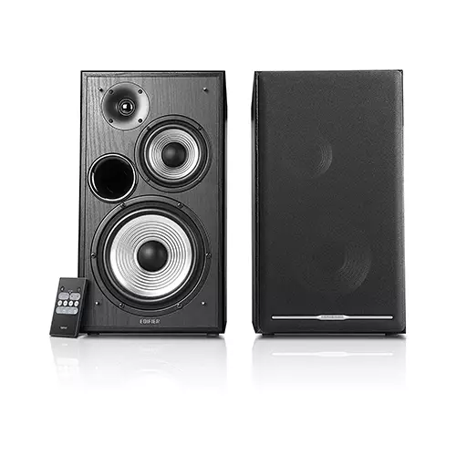 Edifier R2750DB Speaker system is an updated tribute to its highly acclaimed predecessor model, the R2730DB. Enhanced with Bluetooth 4.1 connectivity for audio playback, this three-way Trip-amp audio solution is built to deliver high-performance audio in a robust 2.0 package. The system utilises a professional audio processor from Texas Instruments that offers sophisticated processing, including electronic crossover, speaker compensation and dynamic range control carried on in the audio DSP to make the amplifier perfectly match the speaker system. The total 136 watts of output power creates deep, robust bass from the 6 1/2 inch bass driver and clear treble and high notes from the 4 inch mid-range and 3Z4 inch tweeters. The front-mounted bass reflex port with carefully calibrated cross-section helps to extend the low frequency effect and eliminates air turbulence at the same time. The MDF wooden housing keeps the speaker system thoroughly grounded for boisterous volumes whilst reducing acoustic resonance.