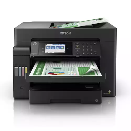 The EPSON EcoTank L15150 A3 Wi-Fi Duplex All-in-One Ink Tank Printer is a robust, multifunctional device designed for professional environments that require high-volume, high-quality color and monochrome printing. Combining print, scan, copy, and fax capabilities in one compact unit, this printer is equipped to handle demanding workloads efficiently, thanks to its PrecisionCore printhead technology and advanced ink tank system. Offering fast performance, it delivers black prints at speeds up to 25 images per minute (ISO) and color prints at 12 images per minute (ISO), with even faster output in draft mode. Whether printing detailed graphics or sharp text documents, the high resolution of 4800 x 2400 dpi ensures exceptional clarity. Duplex printing is built-in, saving time and reducing paper usage, while the integrated ADF allows automatic scanning, copying, or faxing of multipage documents. This printer supports a wide range of media sizes, including A3, Super B, and various envelope formats, making it ideal for businesses that need large-format outputs. The input tray holds up to 250 sheets, while the output tray manages 125 sheets, enabling uninterrupted workflows. A 4.3-inch color touchscreen streamlines operations with easy-to-use navigation and control.Connectivity options include USB and Wi-Fi, with support for mobile printing through Apple AirPrint, Mopria Print Service, Epson iPrint, and other cloud-based services. This allows seamless integration into modern office setups. The EcoTank system provides high page yields with ultra-low running costs, offering up to 7,500 pages in black and 6,000 pages per color refill, significantly reducing the need for frequent ink replacement.The device is compatible with both Windows and Mac operating systems and is energy-efficient, consuming just 19 watts while operating. It weighs 20.7 kilograms and measures 515 x 500 x 350 mm, making it compact enough for shared office spaces. With a one-year warranty or 50,000-page coverage, the EPSON L15150 is a reliable investment for any business seeking professional-grade output and operational efficiency.