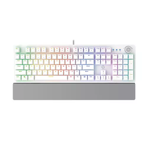 Mk853 fantech mechanical gaming keyboard maxpower lighting effect ergonomic wrist rest lighting keys lighting effects with 22 spectrum mode to enhance your gaming experience. Fantech MK853 Gaming Keyboard Press fn+ins button to change the lightning effect all keys anti-ghosting to ensures that every single key you press registers simultaneously and accurately in-game. High and low key position layout maxpower designed with high and low key layout to adapt your hand. Makes you fee more comfortable. Fantech MK853 Gaming Keyboard Shortcut volume knob the cylindrical volume control knob lets you control the volume in a tense and exciting game battle ergonomic wrist rest offers comfortable support ideal for long hours in the keyboard. An evolved mechanical switch blue switch a very tactile and "Clicky" variety. So, while this switch is a bit louder than the others, Fantech MK853 Gaming Keyboard does give the board a small bit of extra resistance that kicks in right before complete activation, which is very satisfying. Red switch it’s a linear switch, meaning that the force at the beginning and end of each stroke is nearly identical, presenting a pretty big difference