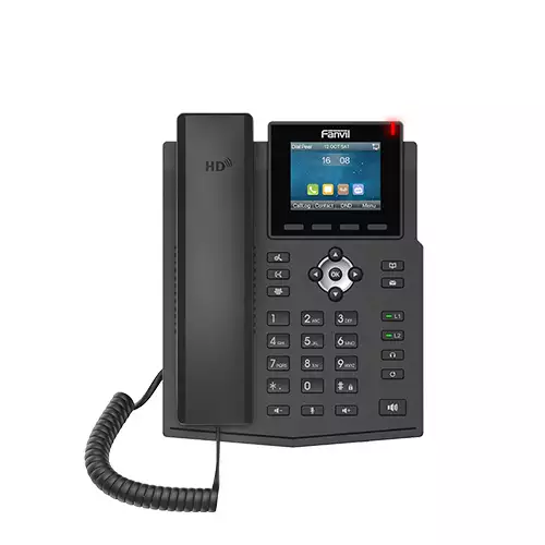 The FANVIL X3SG NEW VERSION IP PHONE is a sleek and modern device designed to facilitate efficient communication in the workplace. It features a high-resolution 2.8-inch color-screen that displays all information clearly and accurately, making it easy to navigate for users of varying experience levels. The phone also boasts two multiplexing line keys and two line keys, along with four SIP lines, enabling users to make and receive calls seamlessly. Additionally, the FANVIL X3SG NEW VERSION IP PHONE comes with a local phone book that can store up to 1000 entries, as well as a call log that can keep track of up to 600 recent calls. This makes it easy to manage contacts and monitor communications effectively. The phone is equipped with an audio conference feature that allows up to three participants to join a call simultaneously, making it ideal for team meetings or remote collaborations. It supports IPv6 and includes HD audio and wideband codec G.722,Opus for crystal-clear sound quality that enhances the user experience. Furthermore, the FANVIL X3SG NEW VERSION IP PHONE has a PoE function that enables power and data transmission over a single Ethernet cable, making installation and maintenance easier. It supports a network speed of 10/100/1000M, ensuring fast and reliable connectivity.