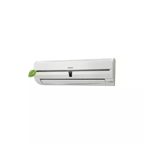 This 1-ton (12,000 BTU) split AC features a rotary compressor and operates at 220- 240V with a power consumption of 1080W. The indoor unit measures 610x685x450mm (10kg) while the outdoor unit is 805x350x625mm (34kg). It utilises Coanda Airflow Technology for better air distribution and maintains low noise levels (≤32dB indoor, ≤40dB outdoor). The system includes a Super Air Purifying System for improved air quality and Power Air Flow Dual Flaps for efficient cooling coverage of 110-150 sq ft spaces.