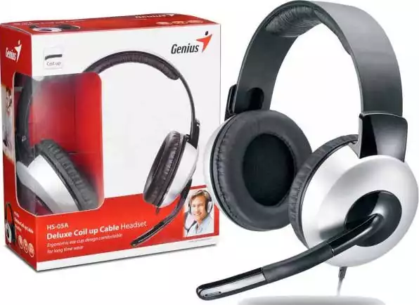 Genius HS-05A: This deluxe full- size- ear cup design prevents any ear discomfort from long time usage; its adjustable headband and leather ear pads make it flexible to fit closer to your head contour. The rubber microphone can be bent to any ideal position. The HS-05A design makes your life comfortable with pleasure, whenever listening to your favorite music, playing games, or Internet chatting.