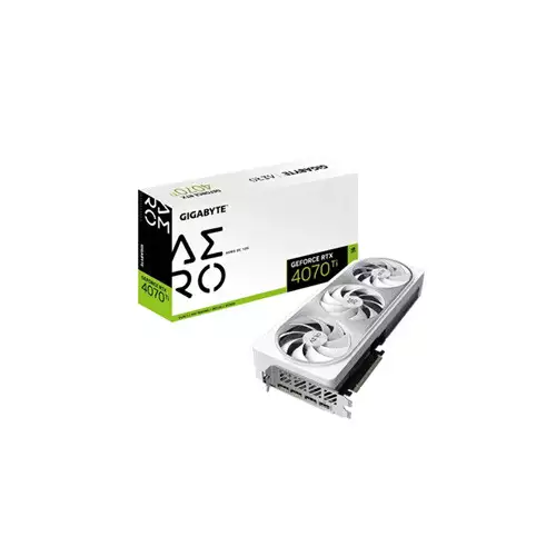 The GIGABYTE GeForce RTX 4070 Ti AERO OC 12GB GDDR6X Graphics Card is a high-performance graphics card designed for gamers, content creators, and enthusiasts seeking the ultimate gaming experience. Powered by NVIDIA's Ampere architecture, the RTX 4070 Ti AERO OC features 12GB of GDDR6X memory and a boost clock speed of 1860 MHz, delivering exceptional gaming performance and graphics rendering capabilities.The AERO OC's advanced thermal design includes a triple-fan cooling system that efficiently dissipates heat from the GPU, ensuring stable performance even during intense gaming sessions. The card also features RGB lighting on the fan shroud, allowing you to customize the look of your build.The RTX 4070 Ti AERO OC comes equipped with NVIDIA's latest technologies, including Ray Tracing, DLSS (Deep Learning Super Sampling), and NVIDIA Reflex, providing gamers with stunning visual fidelity and ultra-fast response times. It also supports NVIDIA's Broadcast app, allowing you to enhance your live streaming and video conferencing experiences.With its powerful performance, advanced cooling, and cutting-edge features, the GIGABYTE GeForce RTX 4070 Ti AERO OC 12GB GDDR6X Graphics Card is an excellent choice for gamers and content creators looking to take their computing experience to the next level.