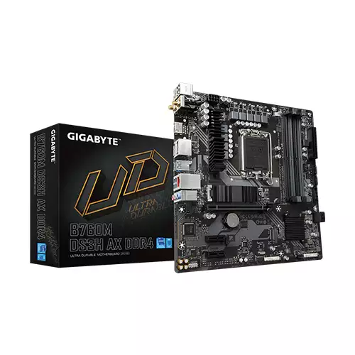 The GIGABYTE B760M DS3H AX DDR4 Motherboard is ideal for your high-performance PC. This motherboard provides exceptional computing performance by supporting 13th and 12th Generation Intel® CoreTM, Pentium® Gold, and Celeron® Processors. This motherboard provides enough memory capacity for demanding applications thanks to an Intel® B760 Express chipset and support for DDR4 memory modules with speeds of up to 5333 MT/s.