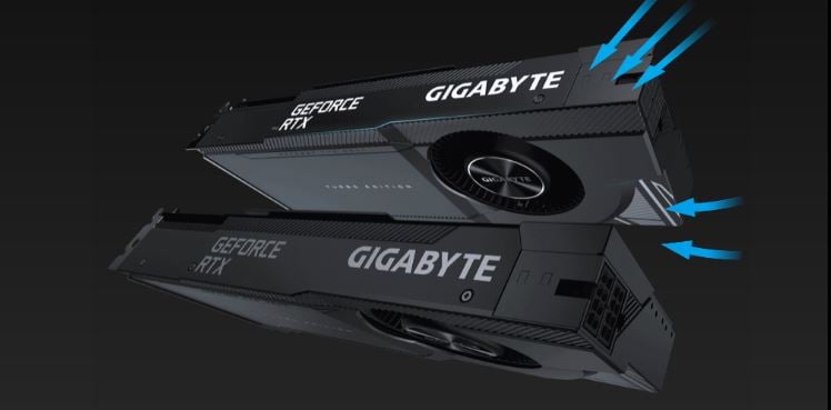 GIGABYTE TURBO is ideal for multi-graphic cards with a space-restricted chassis. The metal cover with the indented design and 80mm blower fan allows for larger airflow intake. With a vapor chamber direct touch GPU, copper heat sink, heat pipe and blower fan, it provides better heat dissipation.