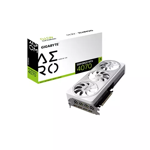 Introducing the Gigabyte GeForce RTX 4070 AERO OC 12G Graphics Card, designed to deliver outstanding performance and visuals for gaming enthusiasts and professionals alike. Powered by the GeForce RTX™ 4070 graphics processing unit (GPU), this card unleashes the full potential of your gaming rig or workstation.With an impressive core clock speed of 2565 MHz (Reference Card: 2475 MHz) and 5888 CUDA® Cores, the Gigabyte GeForce RTX 4070 AERO OC ensures exceptional gaming experiences and smooth rendering for demanding applications.Featuring 12 GB of GDDR6X memory operating at a rapid memory clock speed of 21 Gbps, this graphics card provides lightning-fast data access and enhances overall system performance. The 192-bit memory bus width facilitates efficient data transfer and reduces latency, ensuring swift and responsive gameplay.Equipped with the PCI-E 4.0 interface, the Gigabyte GeForce RTX 4070 AERO OC Graphics Card offers increased bandwidth for faster data transmission, enabling seamless gaming and computing experiences.With a maximum digital resolution of 7680x4320, this card supports ultra-high-definition visuals, delivering stunning detail and vibrant colors. The multi-view feature allows you to connect up to four displays, providing a panoramic view or multitasking environment.The Gigabyte GeForce RTX 4070 AERO OC features a compact card size, measuring L=300 W=130 H=57.6 mm, making it suitable for various computer cases. Its ATX PCB form factor ensures easy installation and compatibility with standard ATX motherboards.This graphics card supports DirectX 12 Ultimate and OpenGL 4.6, unlocking advanced gaming features and realistic visual effects, enabling immersive gameplay and lifelike graphics.To power the Gigabyte GeForce RTX 4070 AERO OC 12G Graphics Card, a recommended 700W power supply unit (PSU) is advised. The card is equipped with a 16-pin power connector, providing reliable and stable power delivery for optimal performance.With three DisplayPort 1.4a ports and one HDMI 2.1a port, this graphics card offers versatile connectivity options, allowing you to connect to a variety of displays and multimedia devices.Upgrade your gaming rig or professional workstation with the Gigabyte GeForce RTX 4070 AERO OC 12G Graphics Card and experience unparalleled performance, stunning visuals, and exceptional gaming experiences for your favorite games and demanding applications.