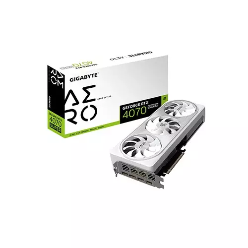 Gigabyte GeForce RTX 4070 SUPER AERO OC 12G 12GB GAMING Graphics Card, now available at TechLand BD, designed to elevate your gaming experience with cutting-edge performance and stunning visuals in Bangladesh. Powered by the GeForce RTX 3070 graphics processing unit, this card delivers exceptional gaming performance, whether you're exploring virtual worlds or conquering the latest titles. With a core clock of 1500 MHz (Reference Card: 1470 MHz) and 2304 CUDA Cores, it ensures smooth and responsive gameplay, allowing you to immerse yourself in the action without compromise. The 12g GB of GDDR6 memory, clocked at 14000 MHz, combined with a 96-bit memory bus, offers ample memory bandwidth for high-resolution textures and fluid gameplay. Equipped with PCI-E 4.0 support, it ensures lightning-fast data transfer rates, unleashing the full potential of your gaming rig. With a digital maximum resolution of 7680x4320 and support for multi-view on up to 4 displays simultaneously, the Gigabyte GeForce RTX 4070 SUPER AERO OC 12G guarantees breathtaking visuals and immersive gaming experiences. Compact in size, with dimensions of L=192 W=117 H=36 mm and an ATX PCB form factor, it fits seamlessly into a wide range of PC builds, ensuring compatibility and flexibility. Compatible with DirectX 12 Ultimate and OpenGL 4.6, it delivers unparalleled visual fidelity and realism, bringing your games to life with stunning graphics and effects. With a recommended PSU of 300W and no power connectors required, installation is hassle-free, allowing you to focus on gaming without worrying about power requirements. Connect with confidence using the DisplayPort 1.4a *2 and HDMI 2.1 *2 outputs, ensuring compatibility with the latest displays and peripherals. Each purchase includes a quick guide to help you get started quickly and easily. Elevate your gaming setup with the Gigabyte GeForce RTX 4070 SUPER AERO OC 12G 12GB GAMING Graphics Card, available now at TechLand BD.