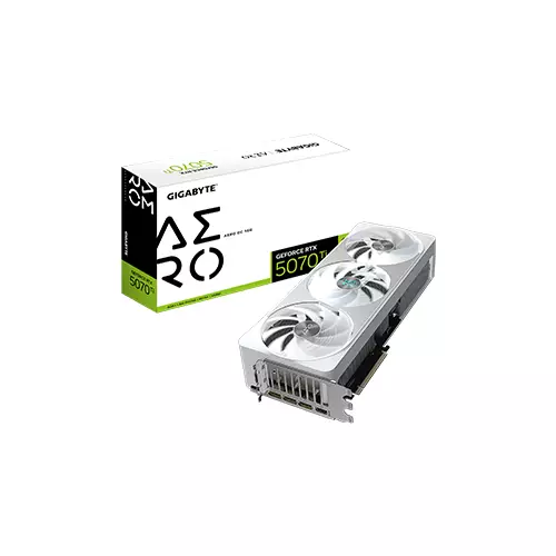 Gigabyte GeForce RTX 5070 Ti AERO OC 16G Graphics Card is built for next-generation gaming and professional workloads. It features 8960 CUDA® Cores, a 16GB GDDR7 memory module running at 28 Gbps, and a 256-bit memory bus for lightning-fast data processing. Designed on a PCI-E 5.0 interface, it provides seamless connectivity and improved bandwidth. Supporting a maximum resolution of 7680 x 4320, this GPU is ideal for multi-display setups, with three DisplayPort 2.1b ports and one HDMI 2.1b port. Its ATX form factor (340mm x 140mm x 70mm) ensures compatibility with high-end gaming PCs. The 750W power supply requirement and 16-pin power connector guarantee stable performance during intensive tasks.